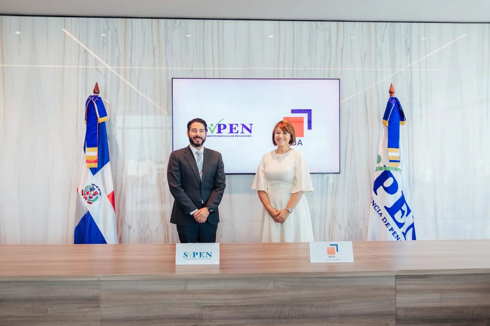 Con miras a fortalecer la educación financiera y promover iniciativas con una visión holística del mercado financiero y del mercado de pensiones, la Superintendencia de Pensiones y la Asociación de Bancos Múltiples de la República Dominicana (ABA) firmaron un acuerdo interinstitucional para apoyarse mutuamente en dichos objetivos.